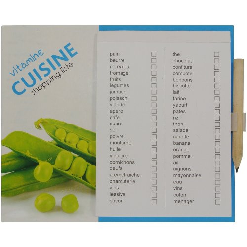 Un Semainier pour une deco originale de votre frigo, réfrigérateur... Des Feuilles détachables pour vos courses et votre shopping. Sur chaque feuille apparait tous les produits pour ne rien oublier lors de vos courses. Cochez une croix sur ce que vous avez besoin et le tour est joué votre liste est préte. Le Crayon de Bois se clipse au memo magnet pour noter votre shopping. Deco Tendance Cuisine Fraicheur pour une déco colorée et raffraichissante.