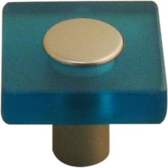 Bouton de porte et tiroir de meuble design en acrylique translucide bleu, MINEO