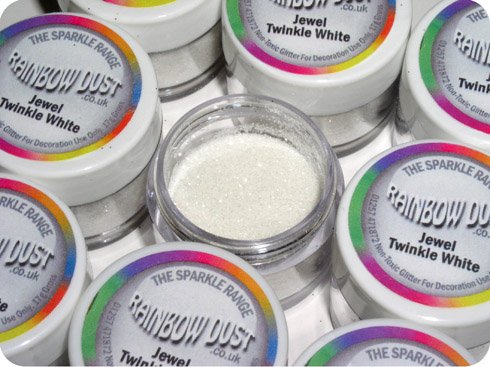 Rainbow Dust Colorant Alimentaire Briller Scintiller Glitter Pour Décoration de Gâteau - JEWEL SCINTILLENT BLANC?Les couleurs sont éclatantes Jewel et lumineux! Ils sont très réfléchissante et brillent de la même couleur partout. Par exemple, une couleur bleue serait scintillent avec des reflets bleus.