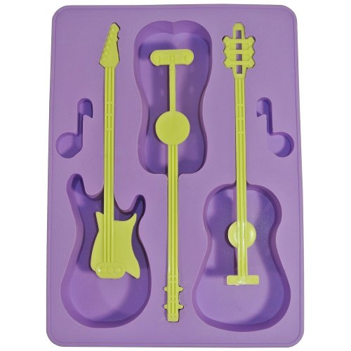 Moule Bac à Glaçons Silicone Deco Fun Guitare Violet Dimension : 15 x 20 x 2 cm. Matière : Silicone. Etat : Neuf sous emballage. Le bac est composé de 3 glaçons en forme de guitare et 2 en note de musique. Les manches des guitares fixent le glaçon et servent de mélangeurs pour vos cocktails. Matière souple et résistante en silicone compatible au lave-vaisselle. Idéal pour tous vos cocktails et réceptions pour épater vos convives. Envoi soigné et rapide.
