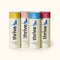 #Thrive 100% Natural Cat Treats. These great treats are freeze dried to preserve all of the minerals, nutrients and great fresh flavours. Thrive Cat Treats come in a handy, re-sealable tube which keeps them fresher for longer! Contains no additives! Available in Chicken, fish, tuna or shrimp. Please select the required flavour via the drop down menu below.