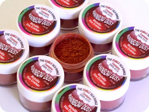 Nos couleurs de la soie comestibles sont une gamme unique et exquise de pigments de qualité alimentaire développés pour donner à vos produits l'accrocheur et distinctif regarder, ils méritent. Ce produit est disponible dans une gamme de couleurs et facile à utiliser. Glitter poussière Rainbow peut être utilisé à la fois sur le givrage sec et humide, en vous donnant des idées nouvelles et passionnantes dans le monde fabuleux de la décoration de gâteaux. La gamme Metallic est une sélection de couleurs dominantes mélangés avec un brillant métallique pour apporter un éclat réel gras à votre cuisson. La couleur feu Cracker permet de créer de superbes gâteaux de feu moteur à thème pour les fêtes d'anniversaire petit garçon. Cette couleur fera un petit gâteau lumineux et audacieux, en saisissant vos invités l'attention dès le départ! Ces vive, chatoyante, non toxique brille sont encore plus lumineux et détaillée. Ils apporteront une touche de glamour indispensable à votre cuisine. Une qualité à épousseter produit de décoration de gâteau qui se révélera être beaucoup pour des centaines de gâteaux et de biscuits. Vous aurez simplement les aimer. Pour de meilleurs résultats saupoudrer ou utiliser une brosse d'un artiste lors de l'application. Contient: E555 E171