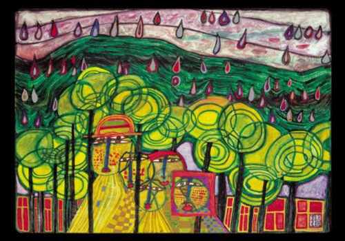 Carte d'Art: Friedensreich Hundertwasser "692 The Rain falls far" 16 x 11