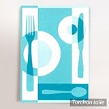 Torchon en toile TABLE - motif couverts - bleu - 50x70 cm