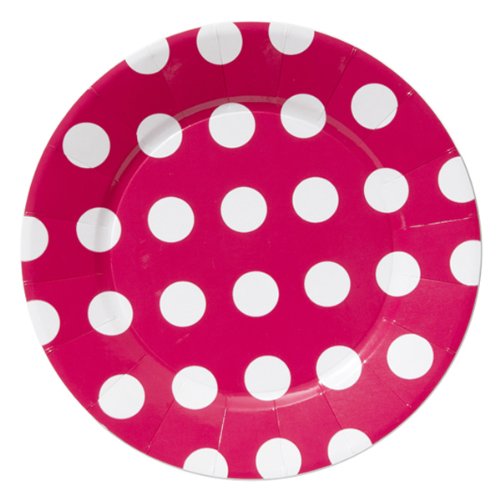 8 assiettes en carton - diam. 28cm - Pois rose - Mesa Bella Création